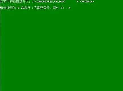 第二步:接下来假如您的电脑上有两个或两个以上的可移动磁盘,则系统将询问您选择使用哪一个盘符进行安装制作,这里很明显应该使用第二个,所以输入盘符:“K”,按下回车