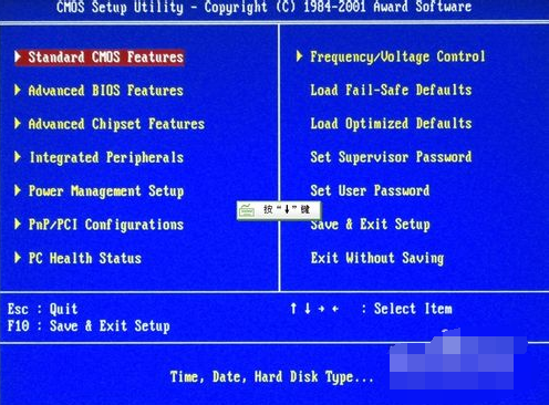 在BOIS界面中,方向键选择,回车键确定,ESC键返回