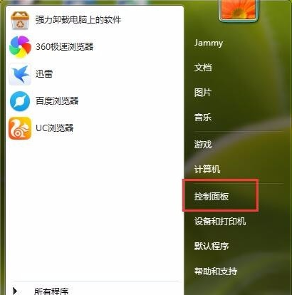 1.首先进入win7系统桌面,鼠标点击桌面左下角的开始按钮,在弹出的开始菜单中选择控制面板,进入下一步。