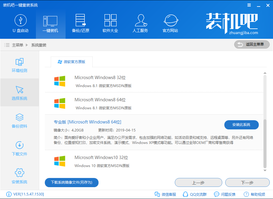 下面是壹号本电脑一键重装系统win8具体操作步骤,以装机吧一键重装系统软件为例。