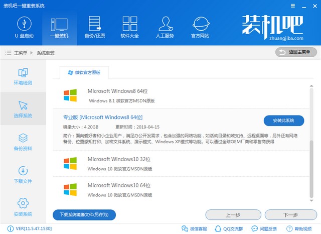 4、装机吧支持微软官方原版的操作系统,选择win8系统,点击安装此系统。
