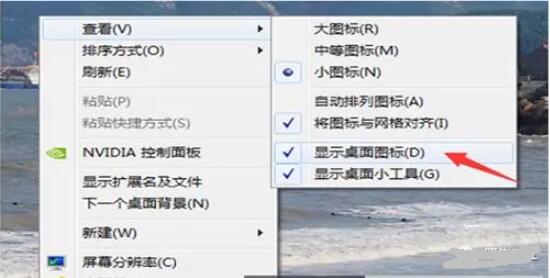 如果电脑开机不显示桌面图标,只有一个空的电脑桌面还在,以WIN7为例,可以在桌面上点右键—查看,勾选显示桌面图标解决。