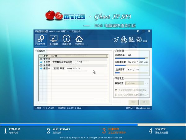 * 安装过程会运行自主开发的驱动选择工具,此工具可智能判断所有的电脑硬件型号,最大限度地避免了因驱动冲突而蓝屏的现象。