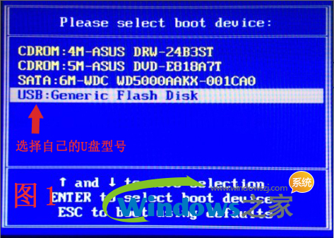 1、重启系统按键盘上的启动热键会出现BIOS快捷启动提示框。在窗口中会有几个选择,通过键盘上的上下方向键“↑↓”选择到您的启动U盘,然后按回车键进入系统之家PE主界面!(一 般我们选择的时候可以看下其中一个选项是有关USB或者您U盘的品牌的英文名称,那就是您制作的启动U盘了!)