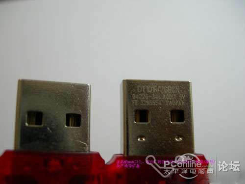 金士顿正品U盘的接口上,在出厂时会打有该产品的型号/容量/串号/产地等信息;而仿冒品的接口上是看不到这些信息的。