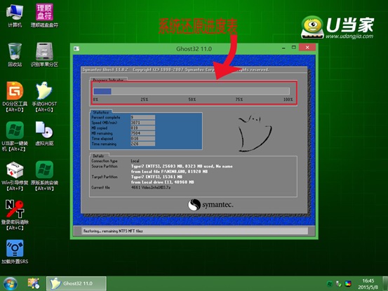 2、进入PE系统后,双击桌面上的“U当家一键装机【Alt+Z】”图标,(或者可以同时按下快捷组合键“Alt+z”)开始一键重装系统的旅程。