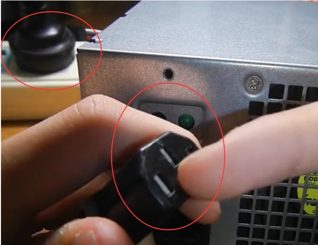 1,首先要连接电源,即将电线插头插到插座或者插排上,将另一头的品字插头插到从主机中拆出来的电源上。