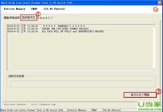 然后选择:“低级格式化”选项,再点击"格式化这个硬盘",实际我们选择的是U盘所以格式化的为U盘。如下图所示: