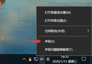 1、首先鼠标右键桌面右下角的“小喇叭”,选择声音。