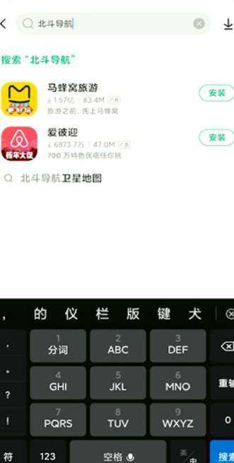 2、如果应用商城收录了北斗导航APP,可以直接点击安装。