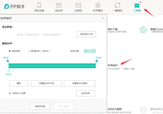 2、在 PP助手上找到「工具箱」-「铃声制作」。