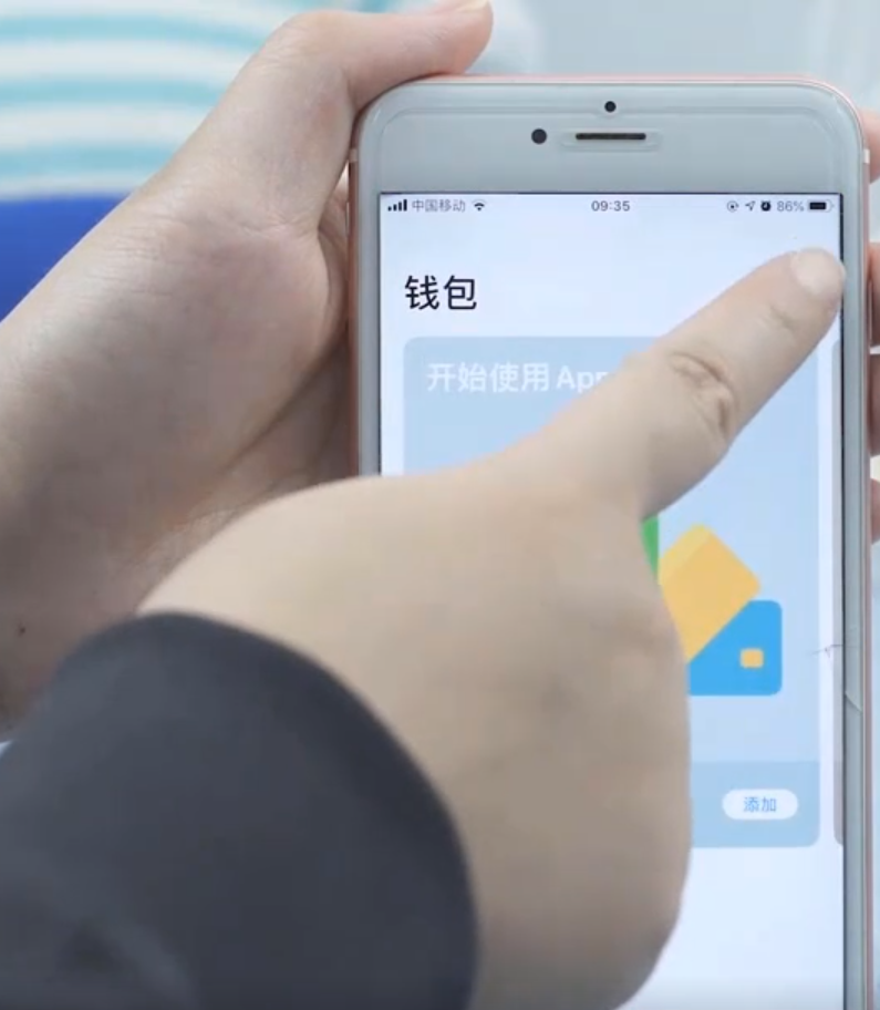 1.以苹果6s PIus为例,打开钱包,点击右上角的+继续。
