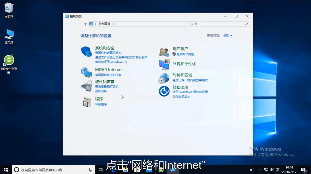 1、点击左下角开始菜单,打开“控制面板”,然后在控制面板里面打开“网络和Internet”。