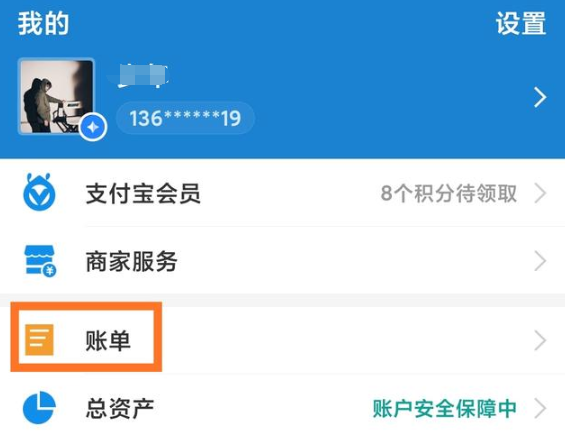 1、打开支付宝,输入“我的”,然后单击“账单”