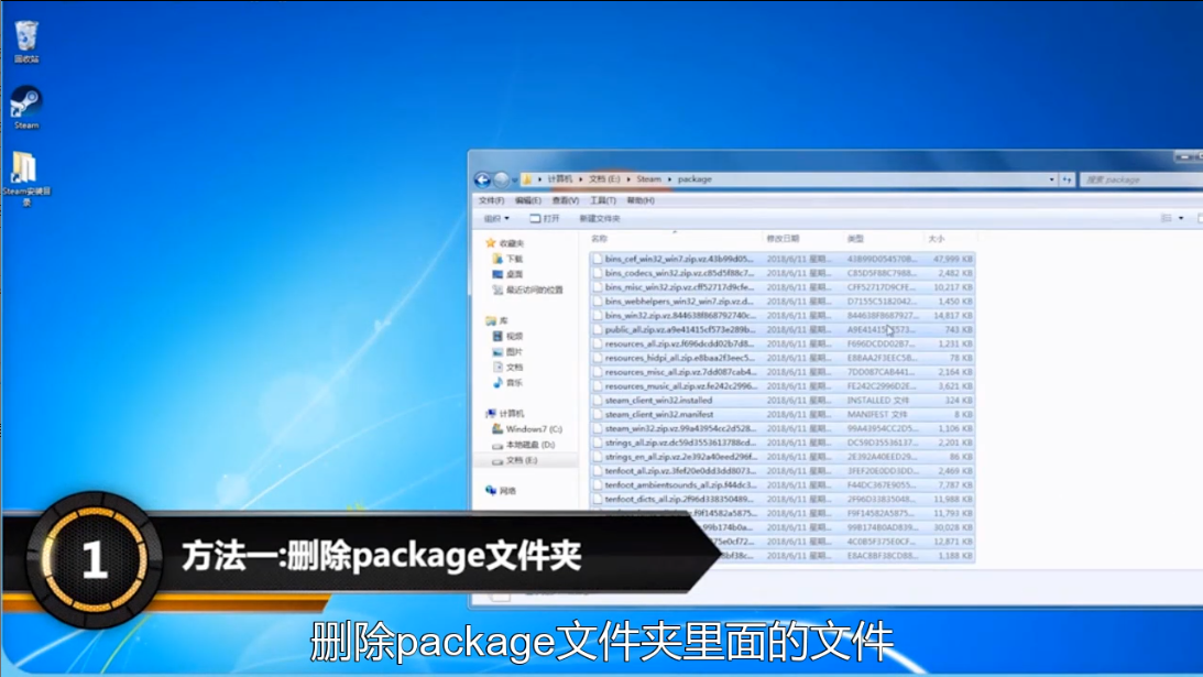 1、打开steam的安装目录,然后再在安装目录里面删除package文件夹里面的文件。