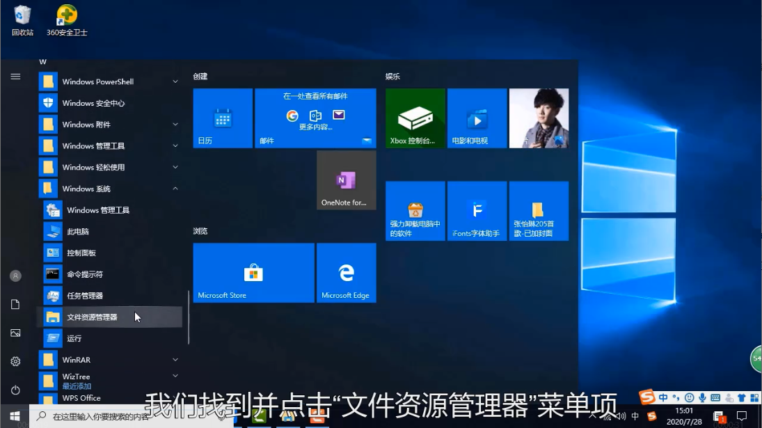 1、点击左下角的开始菜单,然后在里面找到“Windows管理工具”,然后在展开的菜单中就可以看到“文件资源管理器”了,点击打开即可。