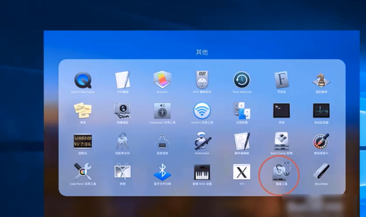 3.在应用菜单中点击“磁盘工具”,点击“外置”下方的第一项。