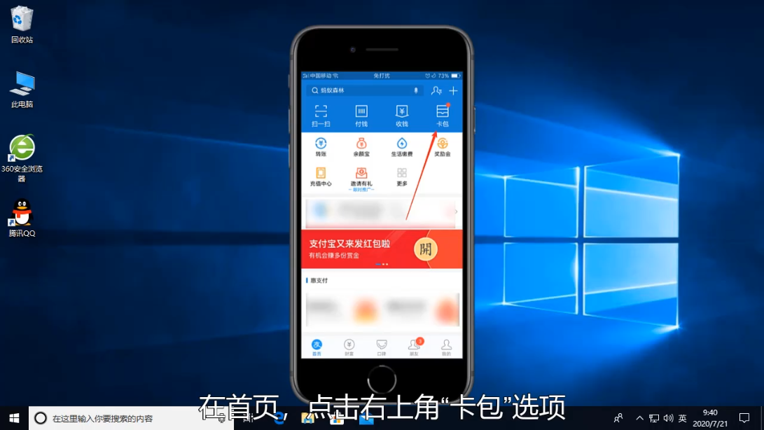 1、打开支付宝app,然后点击打开首页的【卡包】。