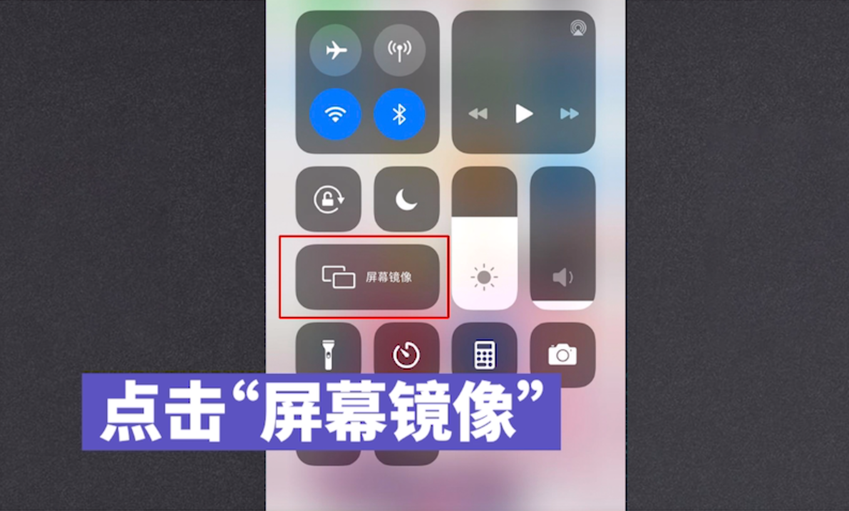 1、说先我们要确保手机和电视机都要连接在同一局域网之下,也就是同一个wifi下,然后拉下苹果手机上方的控制面板,点击“屏幕镜像”。