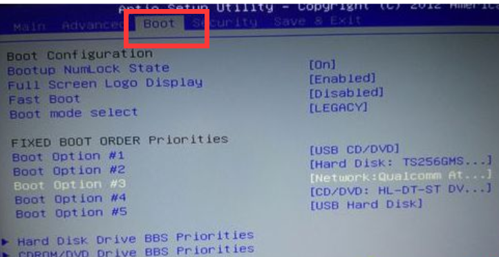 2、进入Hard Disk Drive BBS Priorities。