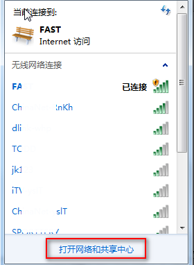 1.将计算机连接到wifi后,单击wifi图标以打开网络和共享中心。