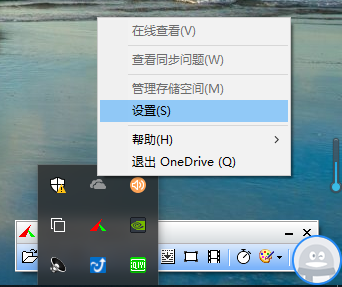 1、首先在桌面下方的通知栏中,右击“OneDrive”图标,选择设置选项。