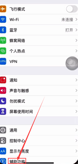 1、进入手机“设置”界面,点击“辅助功能”。