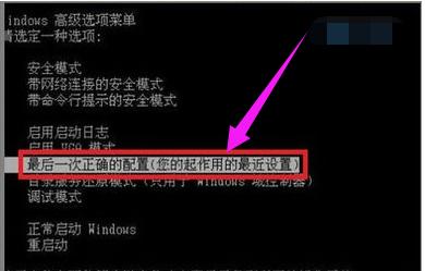 方法一:当电脑首次出现蓝屏时,应当在重启电脑时,按键盘快捷键“F8”进入系统启动菜单中,然后选择“最后一次正确的配置”来启动电脑,据此来修复一下电脑,看问题能否得到有效解决。