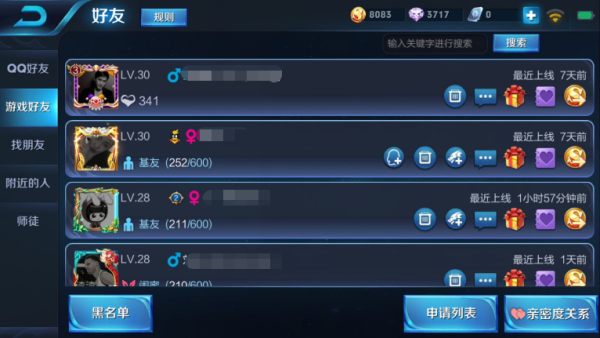 1、点击好友系统,然后选择【游戏好友】在右下角有一个【亲密度关系】。