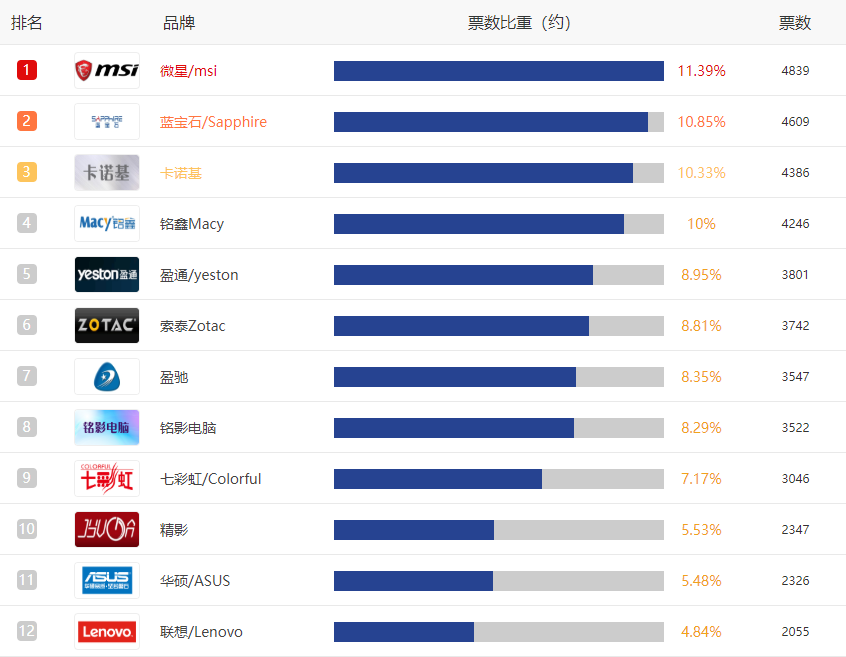 上面就是2021年独立显卡的排行榜啦,现在还在投票中哦,有没有你中意的显卡呢?