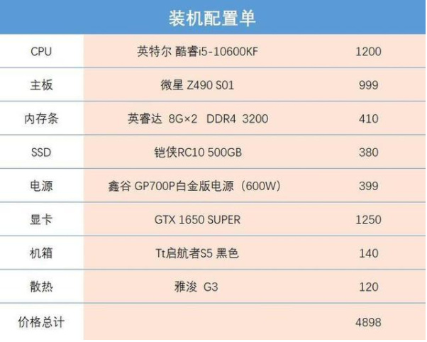 diy装机配置清单如下,这一套配置单价格在5000元以内,各位可以进行一个参考。