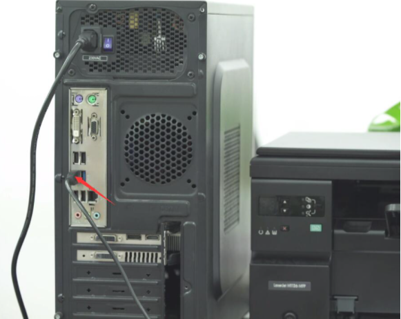 1、将打印机数据线与电脑连接,打印机电源线连接排插;