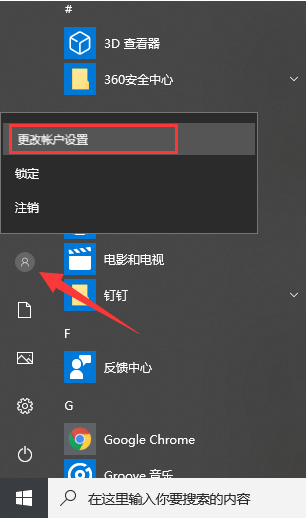 1、单击左下角的开始图标,点击【用户头像】,选择【更改账户设置】。