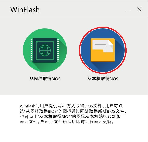 2、打开运行winflash,按照提示选择从本机取得BIOS。