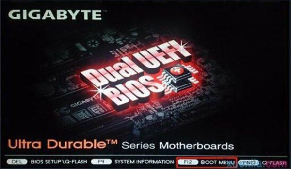 技嘉主板进入BIOS方法:在电脑开机出现logo画面时按下DEL或者F12键即可。