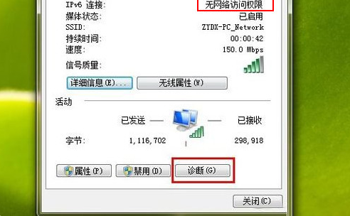 1、我们先进行网络诊断,点击“诊断”。