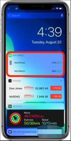 在锁定屏幕或主屏幕上从左向右划动,可以在今日视图中查看电池百分比。