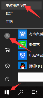 1、按下win键,点击个人账号图标,选择更改账户设置进入。