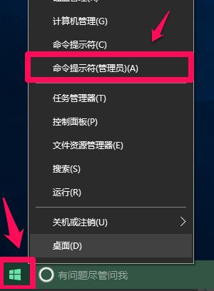 1、我们需要先关闭快速启动,右击系统桌面左下角的win图标,点击命令提示符(管理员)。