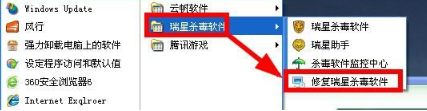 1、ravmond.exe是瑞星杀毒的监控程序,我们只需要卸载掉就好。点击开始菜单,在所有程序中打开修复瑞星杀毒软件,随后卸载即可。