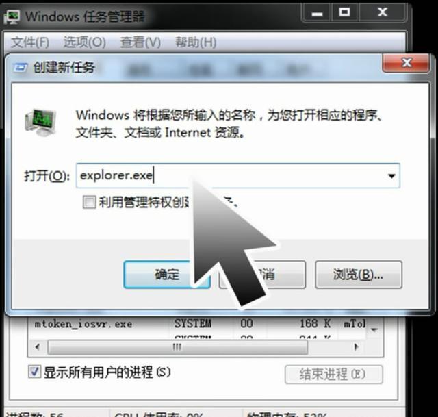 6、我们在弹出的窗口输入栏中输入explorer.exe,然后单击确认按钮。