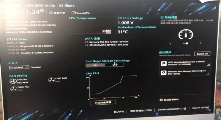 2、按F7进高级模式。在Bios中使用方向键向右选择启动选项卡。并在启动选项卡中找到 Boot Option#1选项,这里就是华硕主板中的第一启动项设置位置。