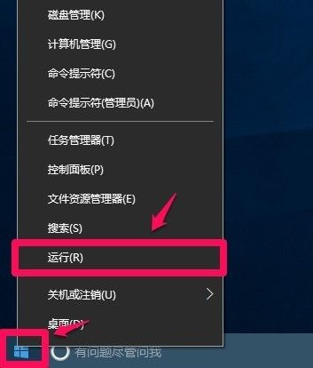 1、右键点击系统桌面左下角的【开始】,在开始菜单中点击【运行】。