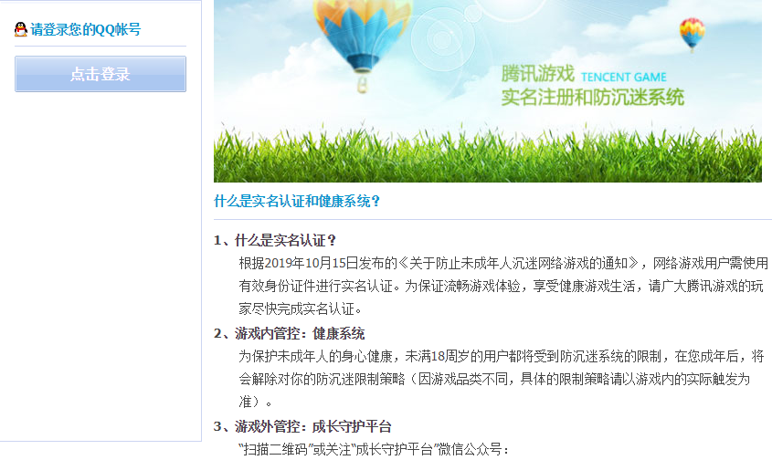 1、 登录“腾讯游戏实名注册和防沉迷系统”腾讯游戏实名注册和防沉迷系统:http://jkyx.qq.com/
