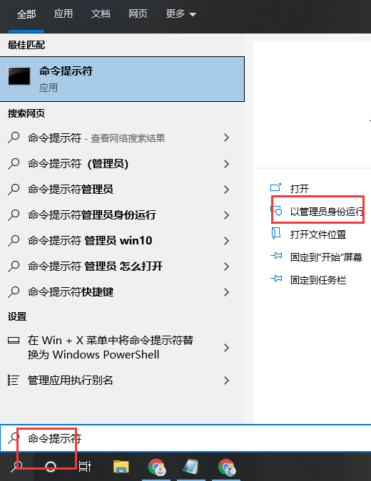 1、在电脑桌面下方搜索命令提示符,找到然后以管理员身份运行。