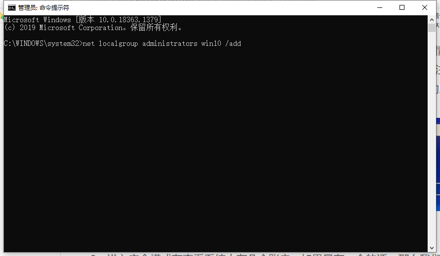 2、进入安全模式有查看系统中有几个账户,如果只有一个的话,那么我们按下【win+x】点击“命令提示符(管理员)”,输入:net localgroup administrators 用户名 /add 的格式 (如我们要创建win10的用户名,则输入:net localgroup administrators win10 /add)注意留空;