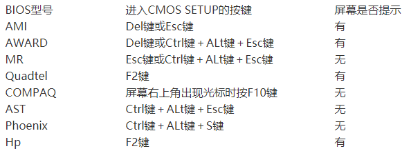 按主板的不同,在开机的第一时间按下对应的的热键就可以进入BIOS,不同品牌,不同型号的电脑进入BIOS的热键也不同。 有的在屏幕上给出提示,有的不给出提示,几种常见的BIOS设置程序的进入方式我简单列表如下: