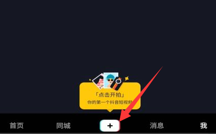 1、打开抖音app,点击下方的加号。