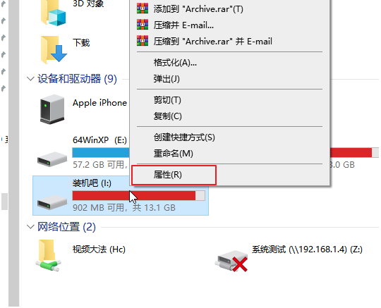 2、接着找到U盘鼠标右击选择【属性】进入。