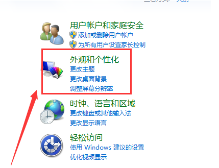 3、在“控制面板”中找到“外观和个性化”并点击进行下一步操作;